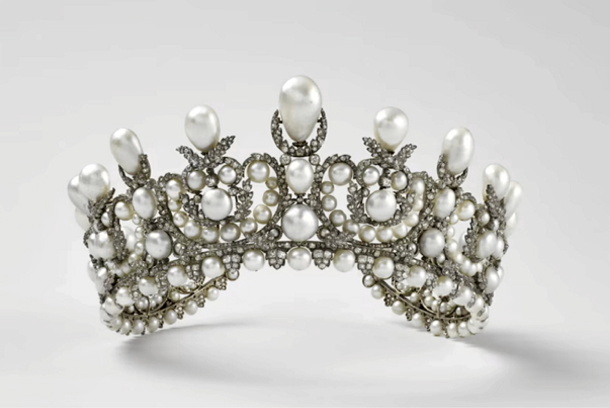 Pic, courtesy the Louvre, shows Empress Eugenie's pearl and diamond tiara.
