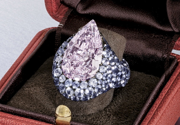 Pic shows the the 8.68-carat fancy purplish-pink natural color diamond ring by JAR.