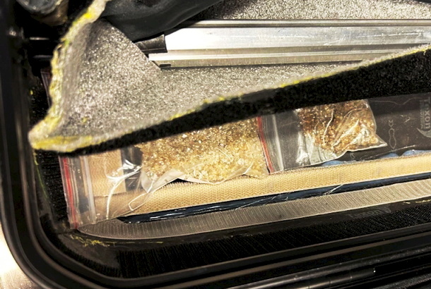 Pic shows the diamonds concealed in the passenger's luggage.
