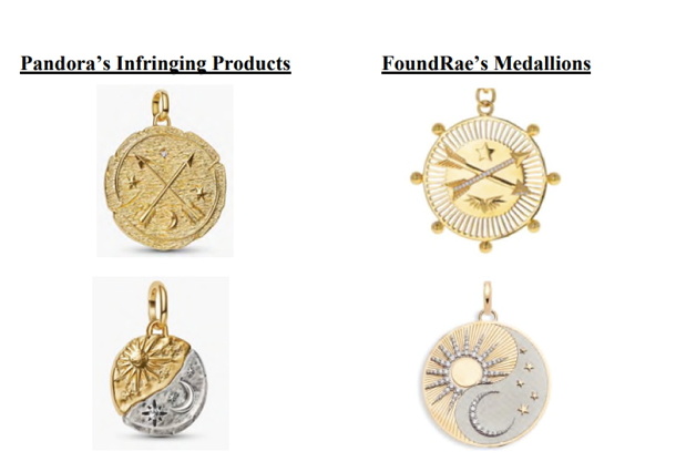 Pandora is facing legal action from FoundRae, a New York-based fine jewelry brand, for allegedly copying the design and marketing of its signature gold medallions. FoundRae claims Pandora "has engaged in willful copyright infringement in violation of ...