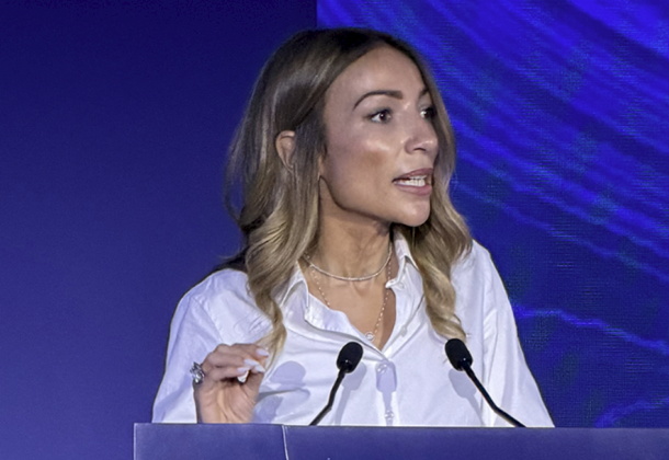 Pic shows WDC president Feriel Zerouki at the KP plenary in Dubai.