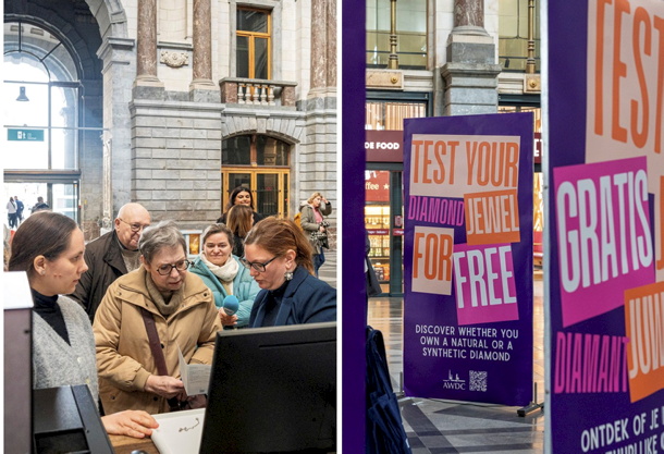 (IDEX Online) - Passengers at Antwerp's central train station were yesterday (10 March) offered free scans to determine if their diamond jewelry was natural or lab grown.