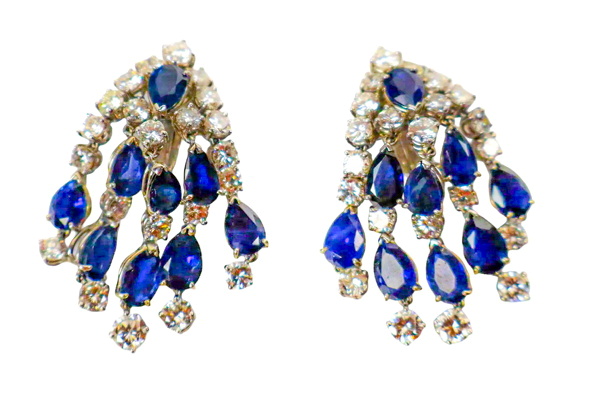Pic shows the Van Cleef & Arpels diamond and sapphire ear clips.