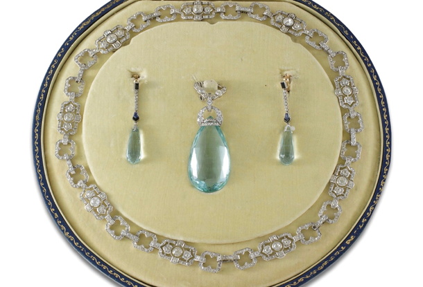 December 29, 25A platinum Art Deco demi-parure that belonged to the late Queen Fabiola of Belgium is to be auctioned next month. The three-piece matching jewelry set comprises a diamond necklace of 38.62 carats, a 120-carat fancy briolette-cut aquamarine that can be ... Read More...